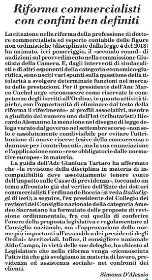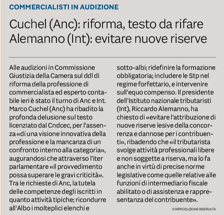Alemanno INT in audizione alla Commissione Giustizia Camera - Riforma commercialisti con confini ben definiti - 30/01/26 Il Sole 24 Ore